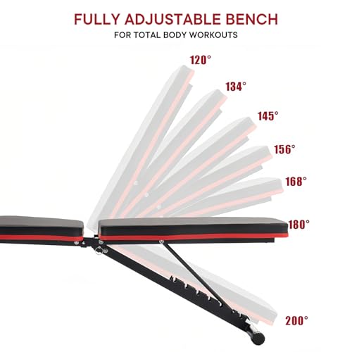 【Adjustable】:Our adjustable weight bench features multiple backrest positions, just loosen the locking pin to quickly adjust to the incline, decline and flat, which can target customize your workout plan according to your fitness level.