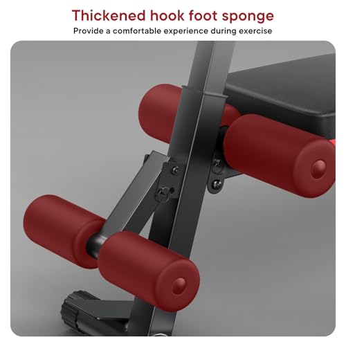 【Comfortable training】:The backrest, headrest and seat of our workout bench are equipped with thick and high-density foam padding, strong rebound that the fatigue of the lumbar muscles is reduced during exercise.