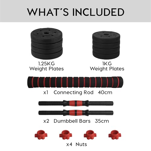 2in1 Fitness Hantelset Jimmy, 30mm Kurzhantelset Kurzhantelstange und Langhantelstange mit Gewichten, Fitnessgerät aus Kunststoff für Zuhause, HomeGym –