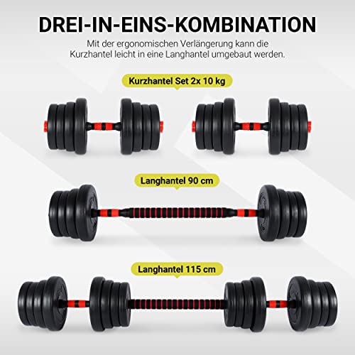 Hantelset Premium 2in1 – Kurzhanteln + Langhanteln verstellbar 20, 30 oder 40 kg – Hanteln Set Dumbbell mit Verbindungsstahlrohr und Gewichten