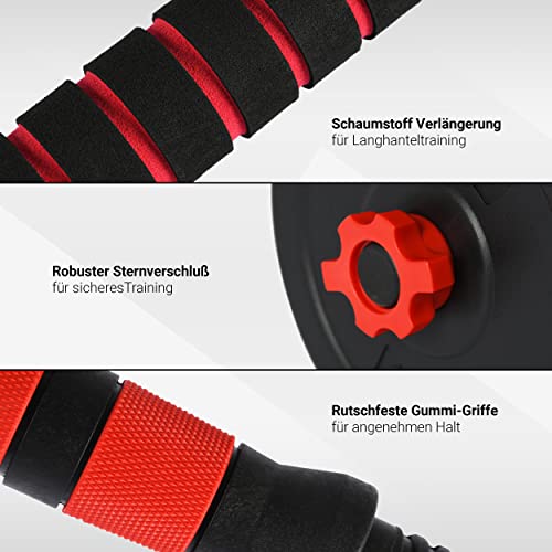 2in1 – Wechseln Sie von Kurzhantel- auf Langhanteltraining innerhalb von wenigen Sekunden. Das Verbindungsrohr ist extra mit 1,5cm Dicke Schaumstoff entwickelt und sorgt für ein komfortables effektives Krafttraining.