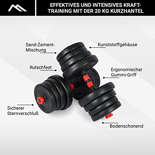 DATEN UND VERSAND – MSPORTS 2in1 Hantelset auswählbar in 20, 30 oder 40 kg Variation | Farbe: Schwarz / Rot | Bohrung: 30 mm | VERSAND – Erfolgt über den Paketdienst auch an Packstationen.