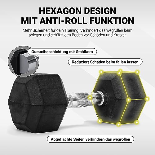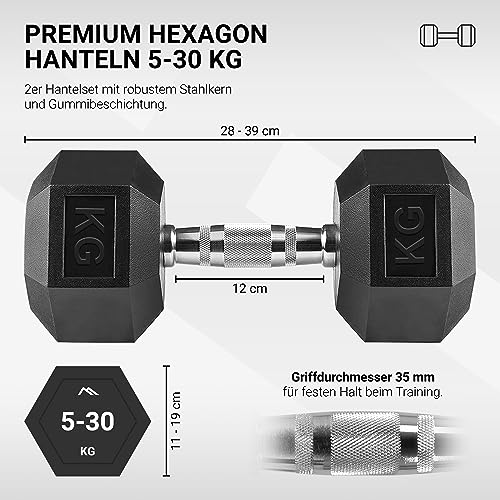 Hexagon Hanteln Premium 2er Set (Paar) | 5-30 kg | rutschsicher ummantelt | ergonomische verchromte Griffe | Kurzhantel-Set | Dumbbell-Set