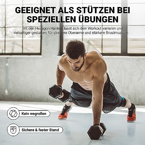 MSPORTS PROFI HEXAGON HANTELN – Eignet sich für den PROFESSIONELLEN Einsatz im Studio oder für das Training zu Hause. Mit dem Msports Kurzhantelset sind Sie PERFEKT ausgerüstet. Durch kleine Größen bzw. Gewichte sind auch niedrige Trainingsgewichte möglich.