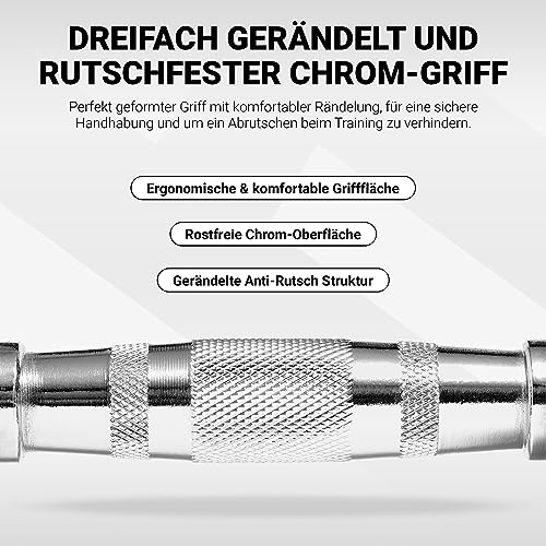 DATEN UND VERSAND – Material: Stange: Stahl, Verchromt; Gummi Ummantelung – massiver Metallkern | Lieferumfang: 1 Paar (2 Stück) von ausgewähltem Gewicht oder komplettes Set. VERSAND – Erfolgt über Paketdienst, auch an Packstation.