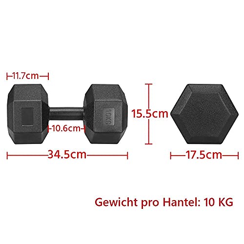 Yaheetech 2 Stück Hantel Set 4/5/6/7,5/8/10 Kg Kurzhanteln Gusseisen Hexagon Hanteln Gewichte Training für Aerobic, Gymnastik und Fitness