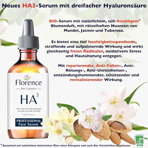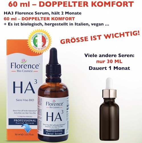 FÜR EIN PERFEKTES HAUTBILD: Das Florence Hyaluronsäure Serum mit Vitamin-C erhöht die Spannkraft der Haut, somit sieht das Gesicht wieder frisch und erholt aus. Als Tagescreme und Nachtcreme geeignet. Alle Wirkstoffe in unserem Gesichtsöl-Serum tragen zu einer Hautverjüngerung und einem besserem Schutz gegen oxidativen Stress bei. Das Hyaluron Gesichtsserum kann aufgrund der hohen Hautverträglichkeit auch als Augencreme gegen Augenringe verwendet werden.
