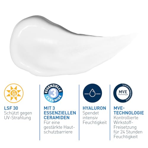 CeraVe Feuchtigkeitsspendende Gesichtscreme mit hydratisierende Tagescreme mit Lichtschutz für normale bis trockene Haut