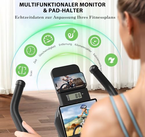 𝘿𝘼𝙏𝙀𝙉𝙑𝙀𝙍𝙁𝙊𝙇𝙂𝙐𝙉𝙂, 𝙋𝙍𝙊𝙁𝙀𝙎𝙎𝙄𝙊𝙉𝙀𝙇𝙇𝙀 𝙀𝙍𝙁𝘼𝙃𝙍𝙐𝙉𝙂 : Das Heimtrainer-Fahrrad mit multifunktionalem LCD-Monitor kann Ihre Zeit, Geschwindigkeit, Entfernung, Kalorienverbrauch und Kilometerstand detailliert aufzeichnen, um Ihren Fitnessfortschritt in Echtzeit zu verfolgen und Ihnen zu helfen, wissenschaftlicher zu trainieren. Der verstellbare Tablet-Halter und der Flaschenhalter sind so konzipiert, dass Sie Videos ansehen können, um Unterhaltung zu genießen und rechtzeitig hydratisiert zu bleiben, wodurch ein professionelles und komfortables Trainingserlebnis geboten wird.