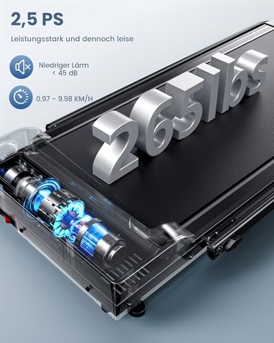 【Stille Walking Pad Klappbar】 Es ist mit einem leistungsstarken und leisen Motor von 2,5 PS ausgestattet und verfügt über ein 5-Schichten-rutschfestes Laufband, das eine hervorragende Traktionskraft bietet und das Training sicherer und stabiler macht.