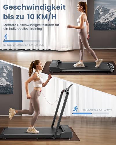 【2 in 1 Laufband für Zuhause】Klappbarer Laufbandgerät, die mit einer Einsteckverbindung und einer Mutter befestigt ist, was die Sicherheit erhöht. Mit Abmessungen von 115 cm × 56 cm × 100 cm lässt es sich einfach aufbewahren. Es hat eine Tragfähigkeit von 120 Kilogramm, was für das ganze Familienfitness geeignet ist.