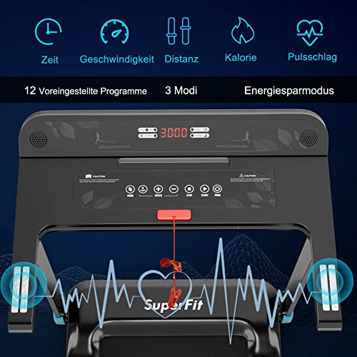 Kraftvoller & leiser Motor: Mit einer verstellbaren Geschwindigkeit von 0-12 km/h, 12 voreingestellte Programme und 3 verschiedene Modi, sodass Sie Ihren individuellen Trainingszielen effektiv näherkommen. Da es sehr leise ist, kann das Laufband auch zuhause verwendet werden.