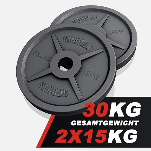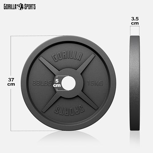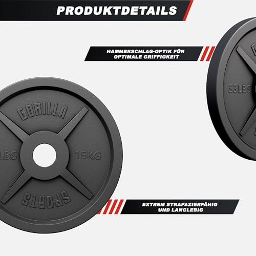 GORILLA SPORTS® Olympia Hantelscheiben – 1,25kg, 2,5kg, 5kg, 10kg, 15kg, 20kg, 25kg, 30kg Gewichte, 50mm Bohrung, Gusseisen, Einzeln/Set – Gewichtsscheiben, Hantelscheiben-Set, Hanteln