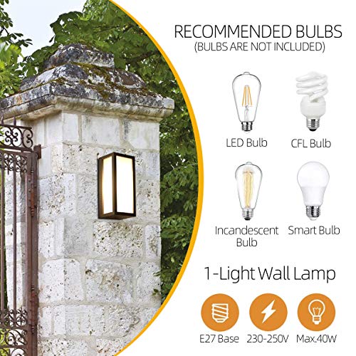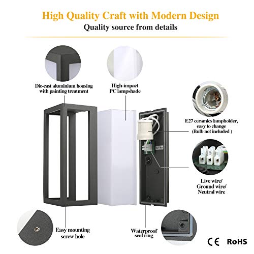 Außen Wandleuchte Außenwandleuchte, Max. 40W E27 Birne Terassenlampe Aluminiumguss Aussen Wandlampe Außenwandleuchten, IP44 wasserdicht Gartenbeleuchtung, Anthrazit