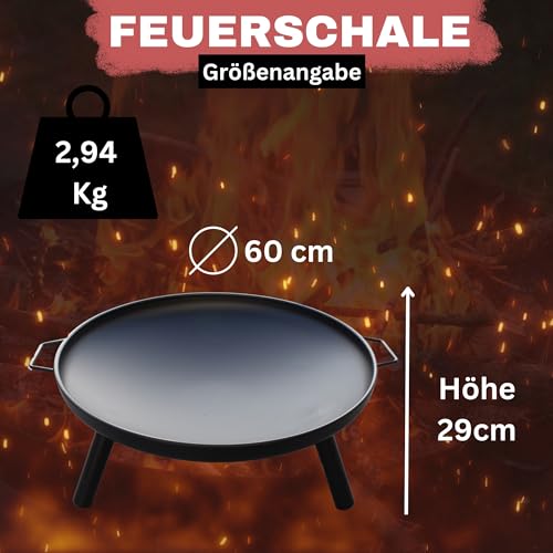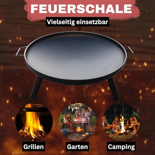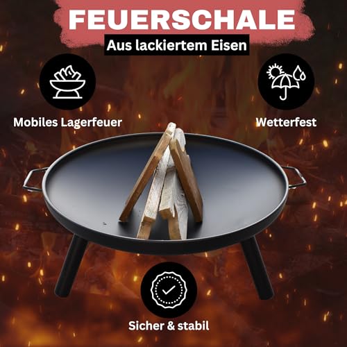 Feuerschale Feuerstelle Ø 60 cm für Lagerfeuer im Garten oder auf der Terrasse mit 2 Tragegriffen aus lackiertem Eisen feuerfest HLKauf-Block