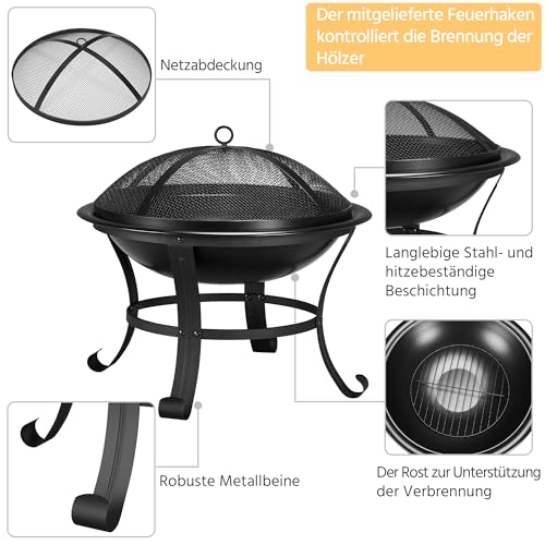 Yaheetech Ø 54cm Feuerschale mit Funkenschutz, Outdoor Feuerstelle Feuerkorb, Fire Pit, Feuerschalen für den Garten, Heizung, Terrasse, Lagerfeuer und Camping