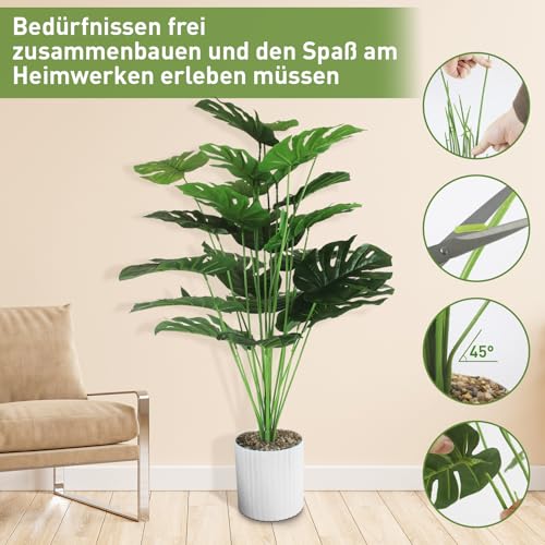 🌿【Verstellbare Äste und Blätter】Die Monstera kunstpflanze hat stabile Metallinnendrähte, die Sie nach Ihren Wünschen formen können. Zweige und Blätter von monstera pflanze im Freien nach Ihren eigenen Bedürfnissen frei zusammenbauen und den Spaß am Heimwerken erleben müssen. Die pflanzen Größe nach dem Zusammenbau beträgt ca. 80 cm.
