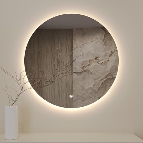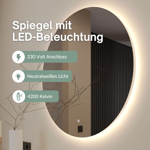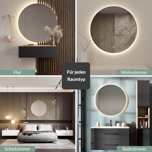 NOVA Spiegel mit Beleuchtung Ø 80cm, moderner Wandspiegel rund für Badezimmer, Flur oder Garderobe, Spiegel Rahmenlos mit einfacher Montage