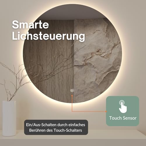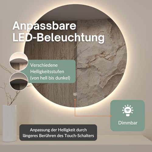 Komfortable Bedienung: Ausgestattet mit einem Touch-Schalter, lässt sich der Spiegel bequem ein- und ausschalten sowie die Helligkeit nach Ihren Bedürfnissen anpassen.