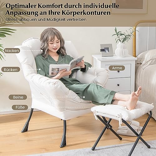 【Sessel & Hocker Set】Gemeinsam mit der Fußstütze bietet der bequeme Sessel Unterstützung für Nacken, Rücken, Arme, Beine sowie Füße. So passen sich der Sessel und der Hocker optimal an Ihre Körperkonturen an und bieten höchsten Komfort, um Stress zu lindern und Erschöpfung zu vertreiben. Zudem kann die klappbare Fußstütze auch als Hocker für einen zusätzlichen Sitzplatz dienen.