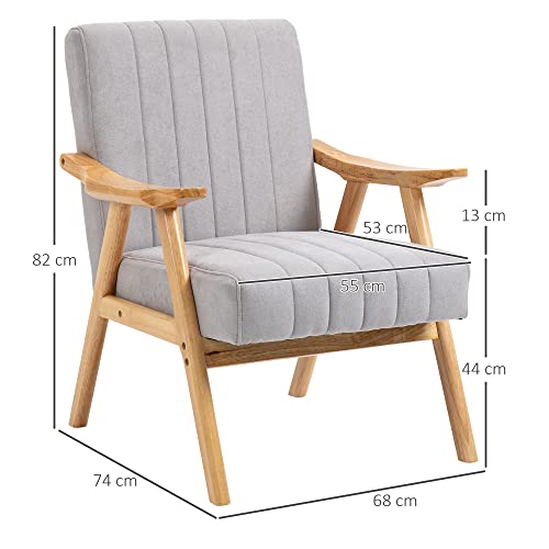 HOMCOM Sessel Wohnzimmer Loungesessel Armlehnstuhl Relaxsessel mit Gummiholzbeine, Polstersessel mit Samtoptik, Lesesessel für Schlafzimmer Arbeitszimmer Hellgrau