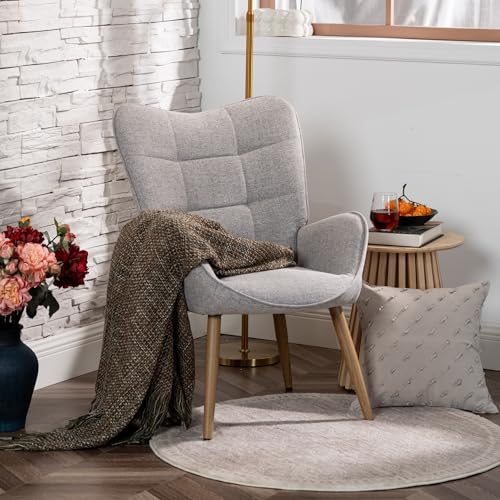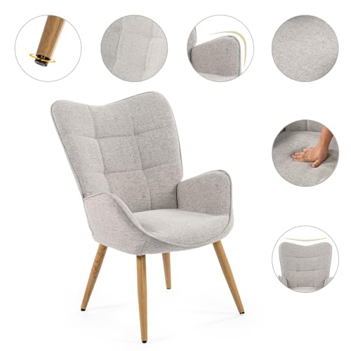 Sessel Relaxsessel Lehnstühle Polstersessel Einzelsofa mit Holzbein Ohrensessel für Wohnzimmer Schlafzimmer Büro Vanity, Stoff, Beige