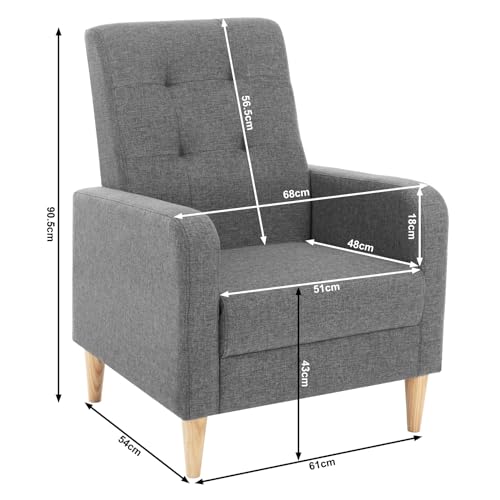 EINFACHE MONTAGE: Mithilfe der mitgelieferten Anweisung und des Zubehörs lässt sich der Polstersessel einfach zusammenbauen, der dank seiner kleinen Größe perfekt als Einzelsessel für Wohnzimmer, Schlafzimmer, Balkon, Büro usw. geeignet ist. Das Hauptteil des Produkts ist aus FSC-zertifiziertem Holz gefertigt.