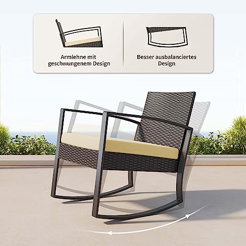 【Ergonomisches Design】 Die breite Rückenlehne dieses Gartenmöbelsets sorgt für eine vollständige Erholung Ihres Rückens. Das verdickte Kissen erhöht den Komfort erheblich. Vergessen Sie Müdigkeit und genießen Sie Ihre Freizeit.