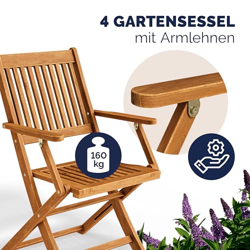 Casaria® Gartenmöbel Set Holz Sydney 5-TLG. Armlehne Klappbar Wetterfest Akazie FSC®-Zertifiziert Garten Terrasse Balkonmöbel 120x70x75cm Sitzgarnitur