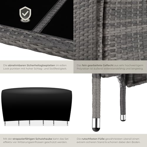 Be the first to review “tectake Polyrattan Sitzgruppe für 6 Personen, Balkon Möbel, Gartenmöbel Set mit Tisch und 6 Stühlen, Essgruppe für Garten Terrasse und Balkon, inkl. Sitzkissen und Schutzhülle – grau/weiß”
