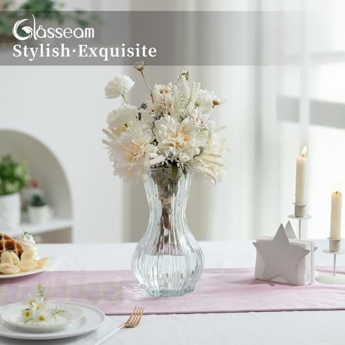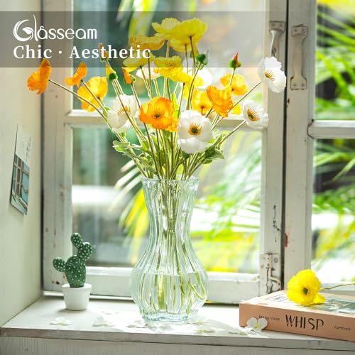 Glasseam Große Vase Glas für Home: Elegante Vasen Deko für Wohnzimmer Esstisch Küche Fenster Tischdeko – Aesthetic Blumenvase Modern Glasvase Klar für Blumen Blumensträuße Trockenblumen Tulips