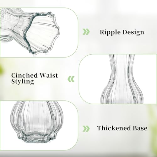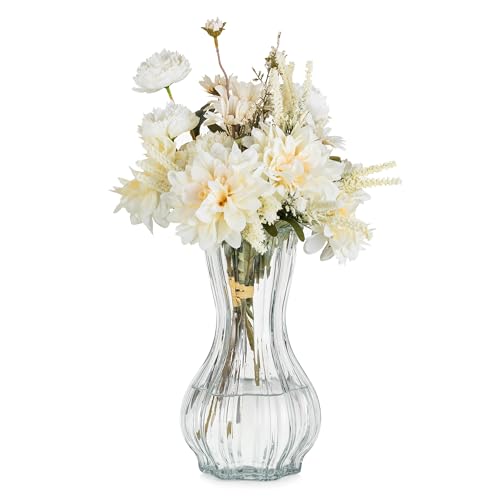 Schicke Glasvase Gross: Mit ihrer schmalen Taille und dem geriffelten Design verleiht diese Vase Deko ein Gefühl von Einzigartigkeit und einen erfrischenden Touch. Die Form der vielseitig Vasen Glas hält nicht nur Blumenarrangements auf elegante Weise, sondern zieht das Auge an und betont die Schönheit Ihrer Blumen. Die Vase fügt sich mühelos in jeden Einrichtungsstil ein, ob modern, Vintage oder Boho.