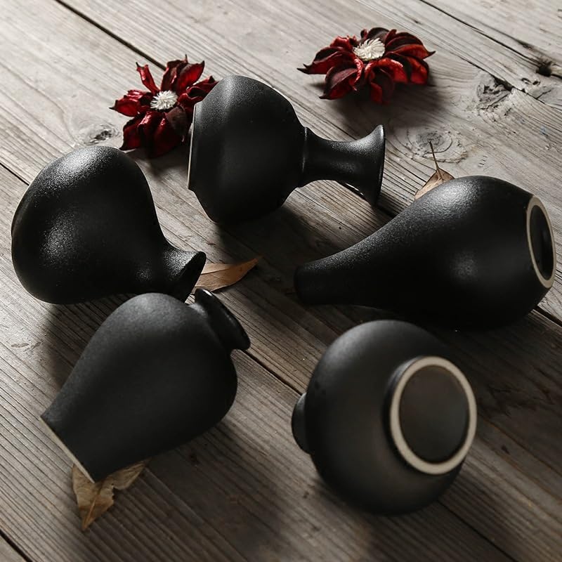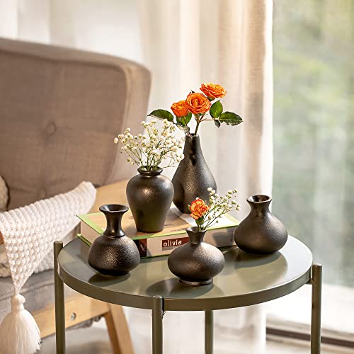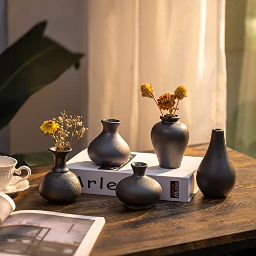 Kleine Schwarze Keramik Vasen 5er-Set, Mini Handmade Keramikvasen für Blumen Pampasgras Moderne Blumenvase Deko für Wohnzimmer Küche Büro Küche und Tisch