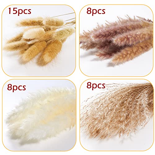 Pampasgras Getrocknet mit Vase- 39 Stück 42cm Pampasgras Deko, Natürliche Trockenblumen Getrocknete Blumen Deko Braun, Boho Deko für Hochzeit Blumen Arrangements Heim Decor