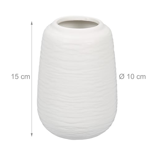 Relaxdays, weiß Vasen Set, 2 Blumenvasen, HxD: 15 x 10 cm, Frisch-& Trockenblumen, Dekovase aus Keramik, Tischdeko