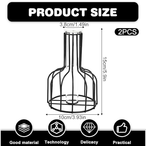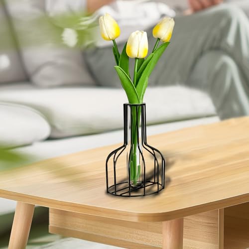 【Breites Einsatzspektrum】 Dieses Schwarze Blumenvase mit Metallrahmen Set kann nicht nur zum Arrangieren von Blumen und zum Schaffen einer natürlichen Atmosphäre verwendet werden, sondern kann auch als eigenständige Kunstverzierung verwendet werden. Es ist eine großartige Dekoration für Häuser, Büros und Gewerbeflächen. Die Kombination aus Eisen und Glas ist sowohl praktisch als auch schön.