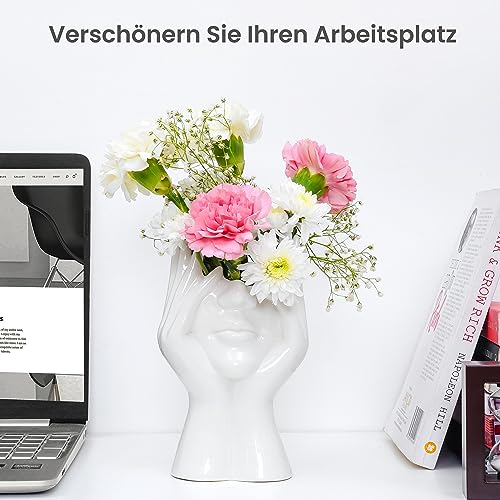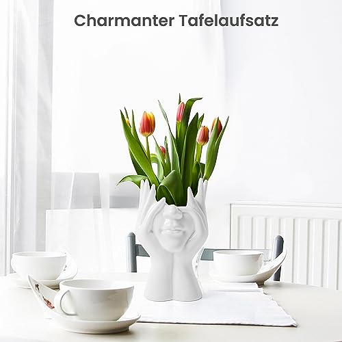 VERSCHÖNEN SIE IHREN RAUM – Unser Blumentopf mit Gesicht wird Ihrem Zuhause einen Hauch von Eleganz verleihen, denn das einzigartige Design zeigt weibliche Hände, die ein charmantes Gesicht umschließen.