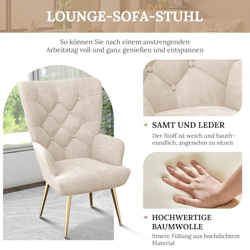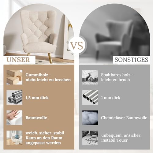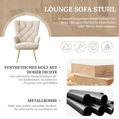 【Premium-Materialien】 Gefertigt aus widerstandsfähigem Polyester, gepolstert mit hochdichtem Schaumstoff und getragen von stabilen Metallbeinen, garantiert dieser Ohrensessel kompromisslosen Komfort und Stil über die Jahre hinweg. Die sorgfältige Materialauswahl sichert eine lange Lebensdauer und eine zeitlose Optik.