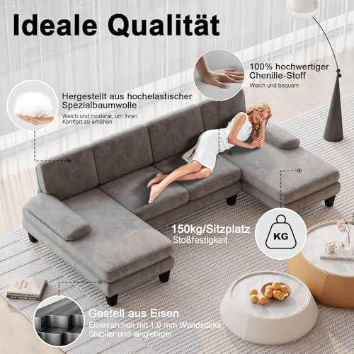 Be the first to review “Flamaker Ecksofa mit Schlaffunktion, 292cm*111cm* 92cm Sofa mit 4 Kissen, U-Shape Sofa mit Abnehmbarer Sofabezug, Grau”