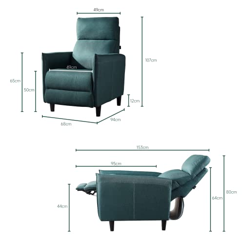 Relaxsessel, Fernsehsessel mit Liegefunktion, Ruhesessel, Polstersessel, Einzelliegesessel, Verstellbare Rückenlehne, Manueller Verstellbar, für Wohnzimmer/Schlafzimmer, Grün