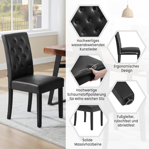 WOLTU Esszimmerstühle 4er Set, Küchenstuhl mit hoher Rückenlehne, Polsterstuhl, Wohnzimmerstuhl, gepolsterter Stuhl, aus Kunstleder-Bezug Holzbeinen, für Esszimmer & Küche, Schwarz, EZS20sz-4