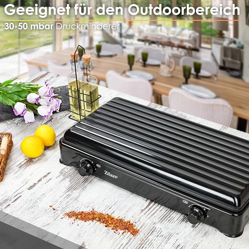 2 Flammiger Gaskocher Schwarz | Campingkocher | Gas Kochfeld | Gasherd | Hockerkocher | abnehmbarer Deckel | Camping Gaskocher 2-Flammig | Gas Kochplatte | 30mbar – 50mbar geeignet |