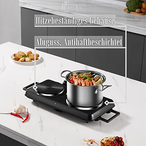 Elektrische Doppelkochplatte 2.500 Watt Campingkocher Herdplatte Kochfeld Camping 2 Kontrolleuchten Kochplatte Überhitzungsschutz aus Glas