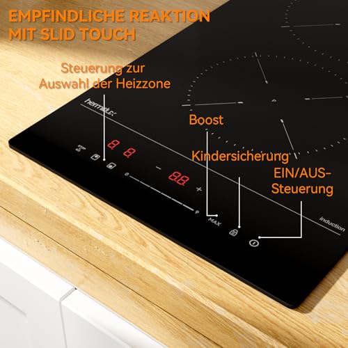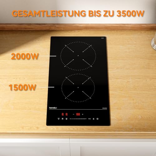 Hermitlux Induktionskochfeld 2 Platten 3500W, 9 Leistungsstufen und Pause