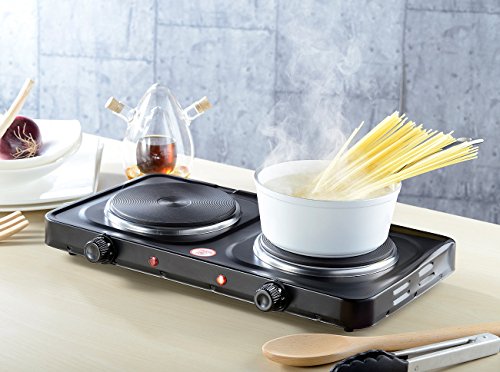 Rosenstein & Söhne Doppelkochplatte: Kompakte elektrische Doppel-Kochplatte 2.000 Watt, 2x 155 mm, 5 Stufen (Campingkocher elektrisch, Elektro Campingkocher, Induktionskochplatte)