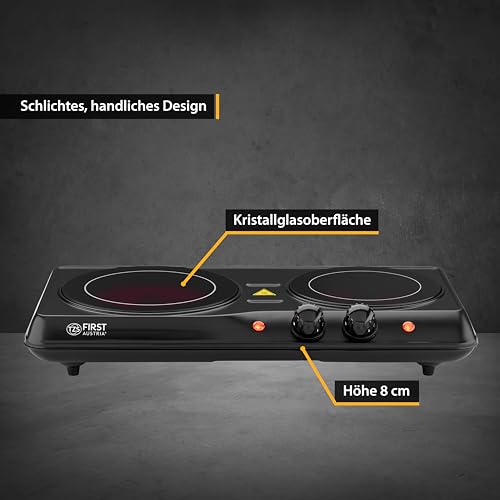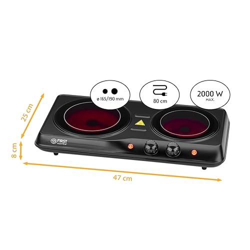 TZS First Austria Infrarot Keramik-Herdplatte doppelt | ALLE Topfarten | Doppelkochplatte 19cm / 16,5cm | Kochfeld für Umzug, Camping, Ferienwohnung – schnelles Aufheizen & stufenlose Einstellung