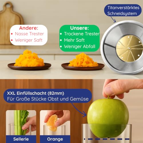 ![Entsafter Gemüse und Obst Testsieger- XXL einfüllschacht für ganzes Gemüse und Obst [1200W Motor & 90 % Saftausbeute] Slow juicer und Saftpresse Für Gesunde und Frische Säfte – Bild 6](https://m.media-amazon.com/images/I/51RE1tFuAiL.jpg)