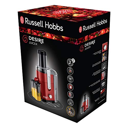 Russell Hobbs Entsafter [Gemüse und Obst] Desire Rot (XL Einfüllöffnung f. ganzes Obst & Gemüse, 2 Geschwindigkeitsstufen, 750ml Saftbehälter, 2,0l Fruchtfleischbehälter, BPA-frei) Saftpresse 24740-56
