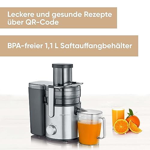 SEVERIN Entsafter, elektrische Saftmaschine mit einfacher Bedienung, XXL-Auffangbehälter für vitaminreiche Obst- und Gemüsesäfte, 1.1L Saftbehälter, Edelstahl-Schwarz, Küchengeräte, 800 W, ES 3570