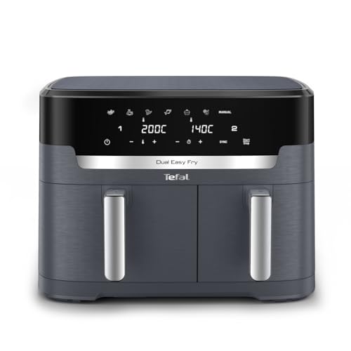 Be the first to review “Tefal Dual Easy Fry XXL Doppelkammer-Heißluftfritteuse, 11 Liter Fassungsvermögen, 6,5 L Schublade und 4,5 L Schublade, ohne zusätzliches Fett, 7 Programme, spülmaschinengeeignet, grau, EY942BE0”